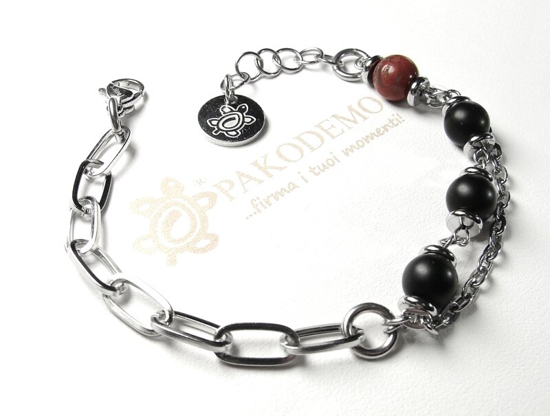 Combinazioni: acciaio inossidabile (nickel free), Onice Nera, Diaspro Rosso.